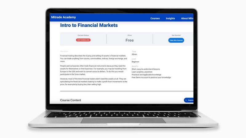 Mitrade Academy is accessible via both mobile and web browsers, providing a convenient and flexible way to learn trading anytime, anywhere.