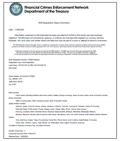 The upgraded systems operate within VISIONVAST Trading Center’s U.S. Money Services Business (MSB)–registered operating framework under the Financial Crimes Enforcement Network (FinCEN), supporting regulatory expectations related to transaction surveillance, recordkeeping, and risk reporting.